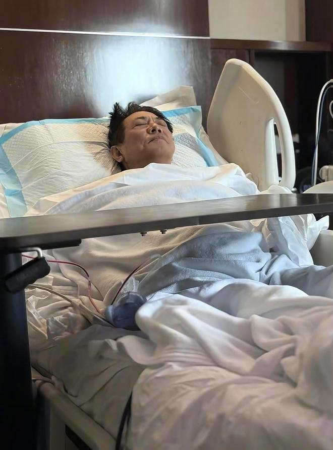 李喷油因甲状腺功能亢进症而住院,床的照片被展示出来,表情很痛苦。我的朋友发布了聊天记录以告知安全性